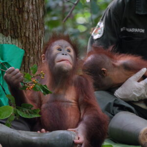 Unfortunately, Orangutans will come to us critically ill or malnourished. They may also need care from time to time as they grow up and go through Forest School. Our dedicated veterinary team are on hand at both of our rehabilitation centres.