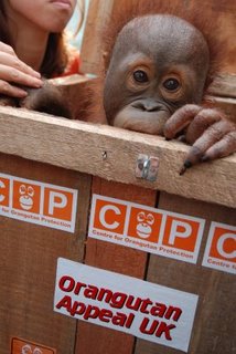 00 am the three orangutans were at the airport, ready for loading. The plane left at 8.15 am and arrived in Jakarta at about 10.00 am. After a 30 minute wait for the next plane, the orangutans arrived in Palangka Raya at about 12 noon.