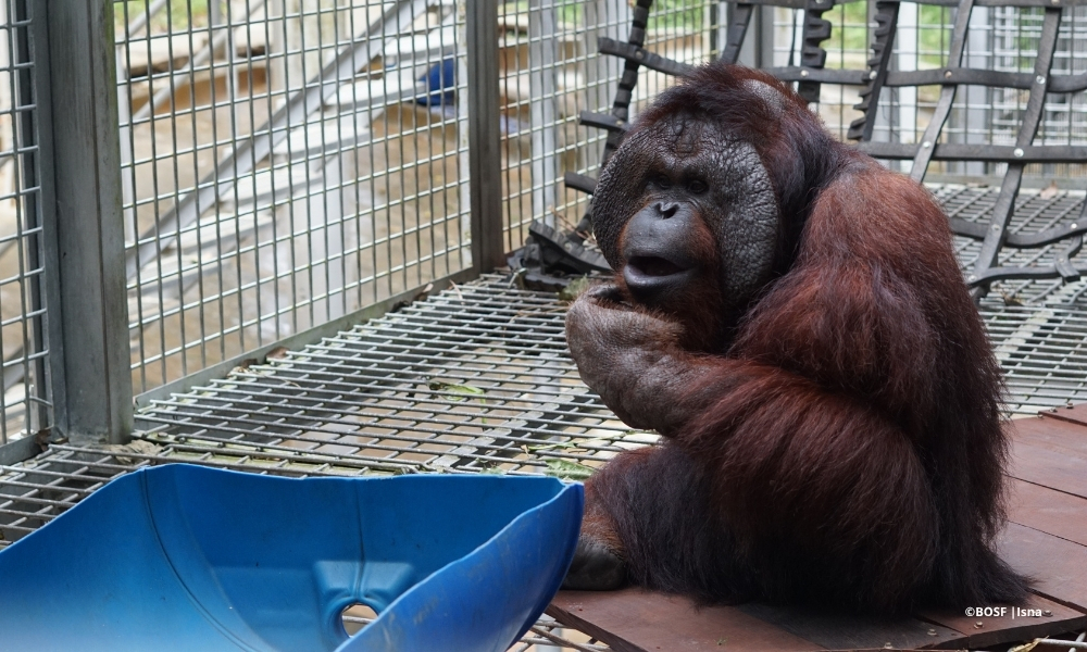 Aside from being physically active, Kopral also enjoys observing his surroundings. Whenever he hears the calls of other orangutans nearby, he actively looks around, trying to locate the source of the sound and figure out what is happening.
